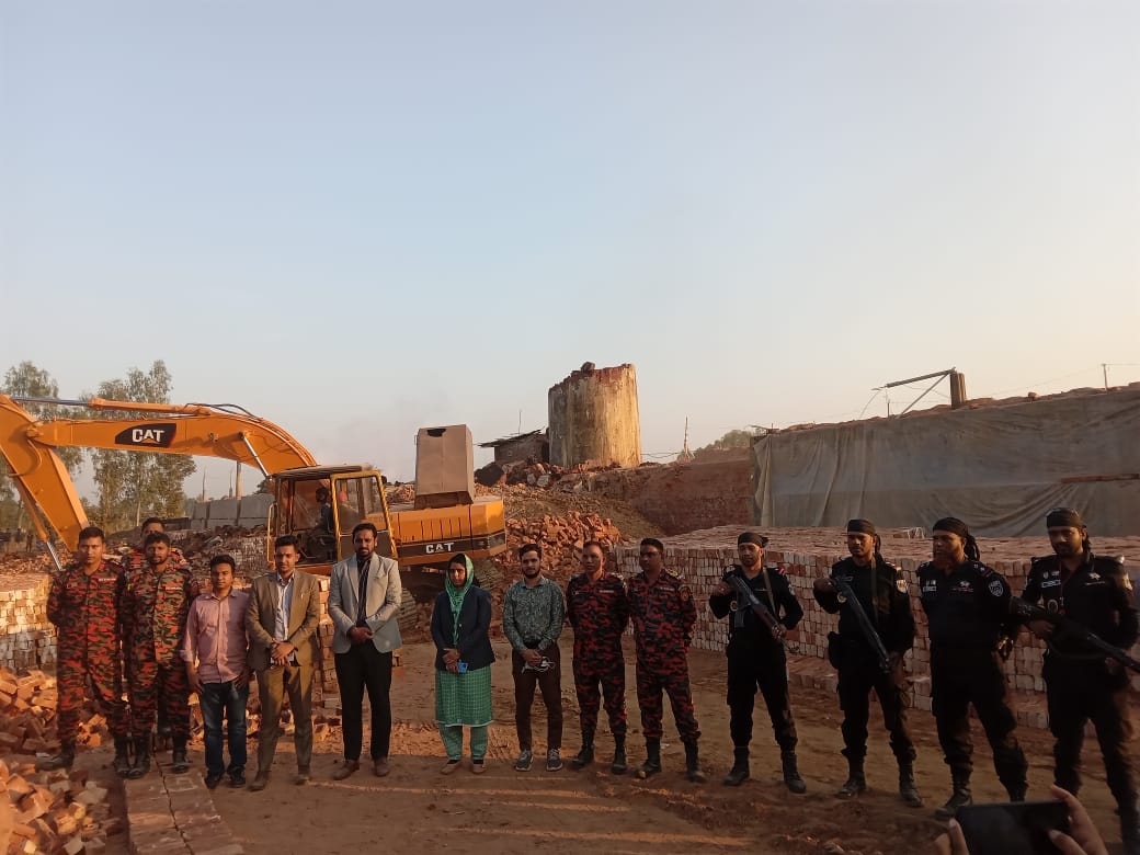 দিনাজপুর জেলা প্রশাসন এবং পরিবেশ অধিদপ্তরের যৌথ পরিচালনায় ইট ভাটায় পাঁচ লক্ষ টাকা জরিমানাসহ চিমনী ধ্বংস