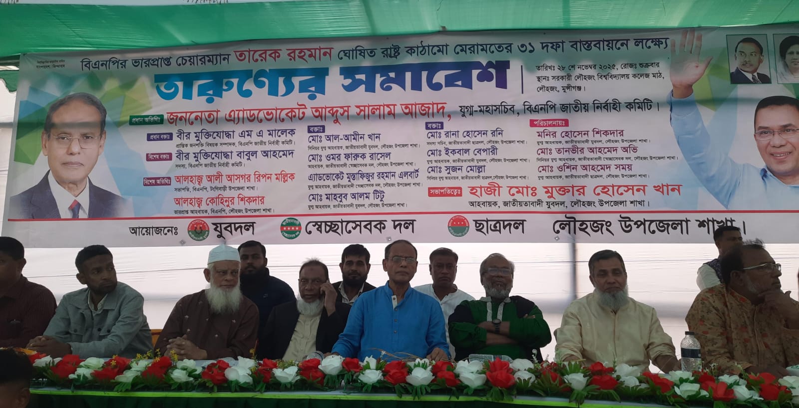 বিএনপির ভারপ্রাপ্ত চেয়ারম্যান তারেক রহমান ঘোষিত রাষ্ট্র কাঠামো মেরামতের ৩১ দফা বাস্তবায়নের লক্ষ্যে মুন্সীগঞ্জের লৌহজংয়ে তারুণ্যের সমাবেশ অনুষ্ঠিত হয়েছে৷